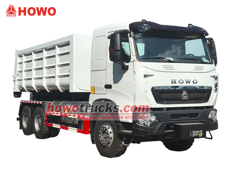 Truk pengangkut sampah HOWO 20 ton adalah kendaraan yang sangat efisien dan andal yang dirancang untuk pengelolaan sampah perkotaan dan pinggiran kota. Dengan jarak sumbu roda 4325+1350mm, mesin diesel MC11.44-50 440hp, emisi 10.518L. Transmisi HW19710, 10 gigi maju, 2 gigi mundur, ban 12.00R20 dengan total 11 buah, dilengkapi AC, USB, bantuan arah, dan 3 tempat duduk. Rangka dan sasis menggunakan struktur terpisah. Melalui perangkat lengan kait hidrolik di bagian belakang kendaraan, truk ini dapat dengan cepat mengaitkan dan mengangkut tempat sampah standar, mewujudkan mode operasi sirkulasi "satu kendaraan, banyak tempat sampah".