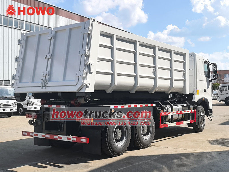 ●Truk pengangkut kait HOWO 20 ton cocok untuk berbagai aplikasi, termasuk pengumpulan sampah perkotaan dan pedesaan, pengangkutan sampah lokasi konstruksi, dan pengangkutan limbah padat pabrik.