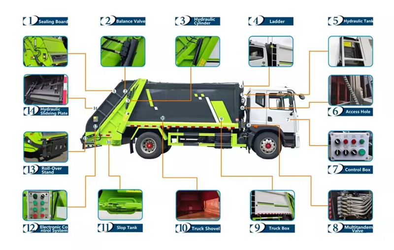 Itu badan pemadat pemuat belakang Sistem kontrol elektronik cerdas mengatur pengoperasian setiap komponen dengan tepat. Desain pintu belakang dengan segel ganda sepenuhnya menghilangkan kebocoran. Struktur keseluruhan telah diuji secara ketat, memastikan daya tahan dan keandalan, serta memberikan dukungan kuat untuk operasi sanitasi yang efisien.
