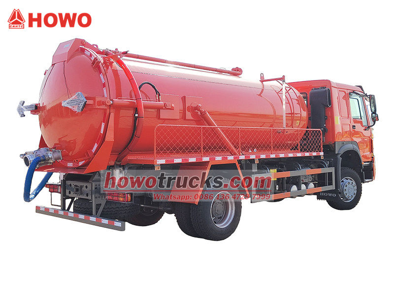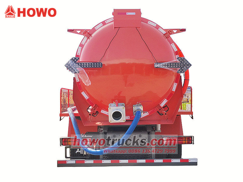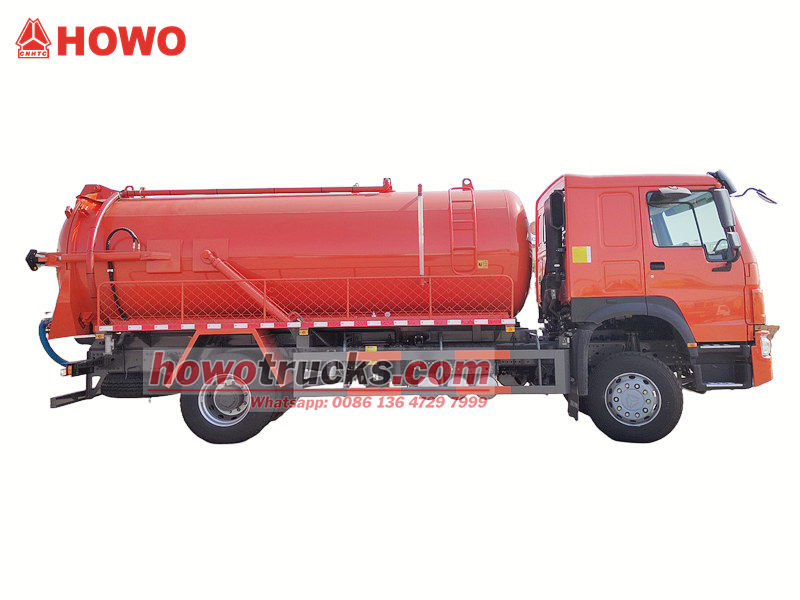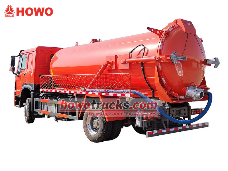 ●Truk penyedot air limbah Howo 300HP terutama digunakan untuk membersihkan lumpur, limbah, dan feses dari tangki septik, saluran pembuangan, tangki sedimentasi, dan kolam air limbah industri.