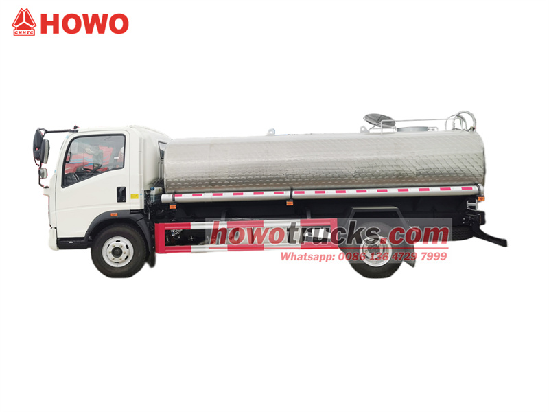 Truk air minum SINOTRUK HOWO berbahan baja tahan karat untuk ekspor.