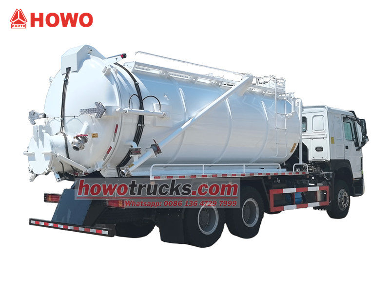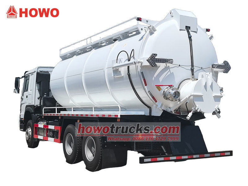 Truk pompa hisap vakum Howo 20 cbm (juga disebut truk tangki vakum Howo 20.000 liter, truk pompa tangki septik Howo 20 cbm, truk hisap vakum HOWO 400hp, truk hisap limbah vakum Howo 6x4, truk tangki pembuangan limbah HOWO 10 roda). Digunakan untuk mengumpulkan, mengangkut, dan membuang cairan seperti air kotor, lumpur, dan limbah septik. Badan tangki telah diberi perlakuan anti korosi dan anti karat sehingga sangat tahan lama. Dikombinasikan dengan pompa vakum MORO, alat ini memiliki daya hisap yang kuat dan merupakan peralatan profesional yang sangat diperlukan dalam pengelolaan lingkungan perkotaan dan pedesaan.