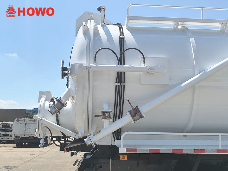 Dilengkapi dengan pompa vakum MORO dan tangki tertutup, Truk pompa hisap vakum Howo Dilengkapi dengan fungsi penyedotan sendiri, pengurasan sendiri, dan pengosongan sendiri, alat ini secara efisien menyelesaikan tugas pembersihan di saluran pembuangan, tangki septik, tangki pengendapan, dan lokasi lainnya. Desainnya menggabungkan kapasitas besar dengan daya hisap yang kuat, memastikan pengoperasian yang mudah, aman, dan andal. Alat ini tidak hanya meningkatkan efisiensi kerja tetapi juga secara efektif meningkatkan kebersihan lingkungan, menjadikannya peralatan penting untuk sanitasi perkotaan dan pemeliharaan pipa.