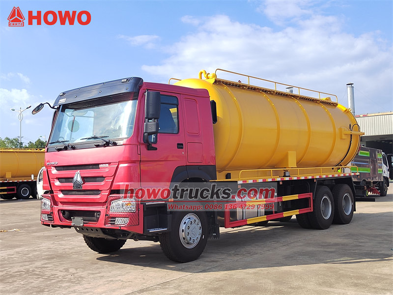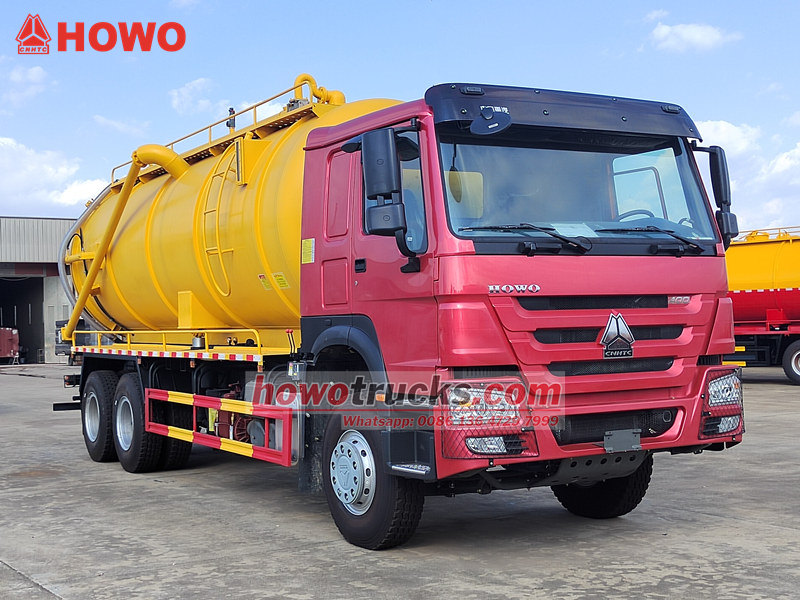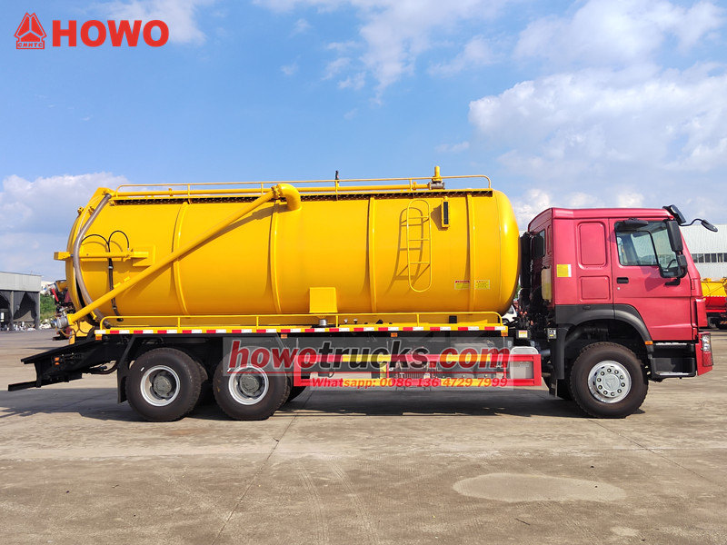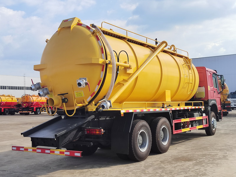 Pembersih saluran pembuangan vakum HOWO dibangun di atas sasis SINOTRUK HOWO 6×4 dan memiliki tangki baja karbon 20 meter kubik yang dipasangkan dengan pompa vakum Jurop buatan Italia, mampu menghasilkan tingkat vakum tinggi 93%. Ditenagai oleh mesin Weichai 400 hp dan gearbox 10 kecepatan, kendaraan ini dilengkapi dengan penutup belakang yang terkunci secara hidraulik, sistem alarm anti-luapan, dan selang hisap 10 meter. Kendaraan ini dirancang khusus untuk operasi pengangkutan limbah skala besar di saluran sungai dan jaringan pipa kota.