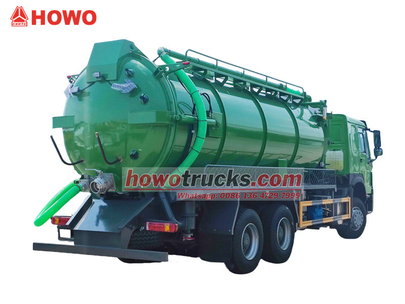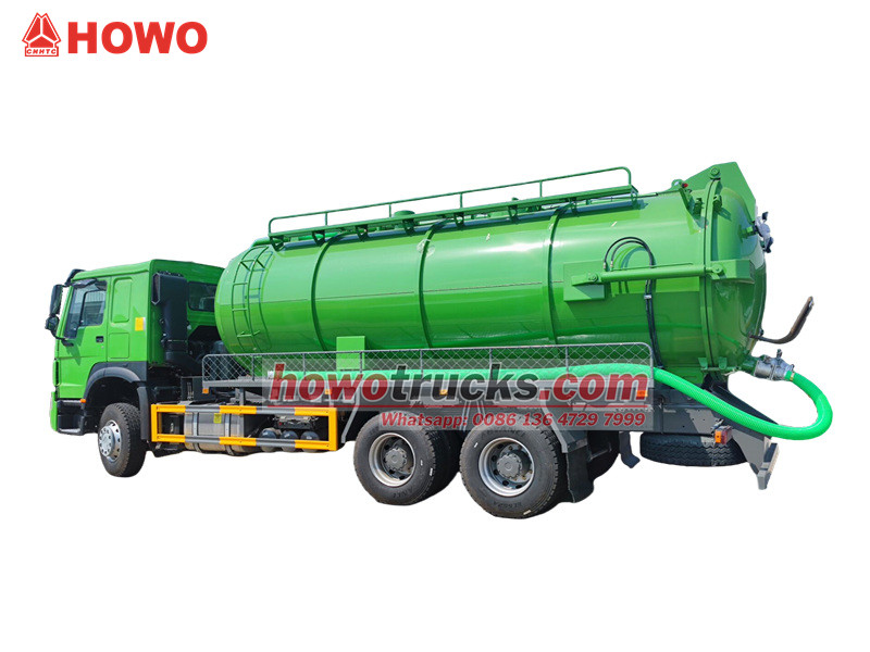 Jurop pump, 4×4, 6×6, RHD drive is optionalTruk penyedot limbah SINOTRUK HOWO adalah kendaraan sanitasi profesional yang dibangun di atas sasis tugas berat HOWO 6x4, beroperasi berdasarkan prinsip tekanan negatif vakum. Kendaraan ini terutama digunakan untuk menyedot dan mengangkut limbah cair seperti lumpur dan feses dari saluran pembuangan, tangki septik, dan saluran air hujan, secara efektif mengatasi tantangan polusi dan pembersihan di saluran pipa bawah tanah perkotaan dan berbagai jenis parit. Komponen intinya meliputi pompa vakum MORO buatan Italia yang efisien dan tangki limbah berkapasitas besar, yang menawarkan kemampuan penyedotan jarak jauh dan kedalaman penyedotan vertikal yang signifikan.