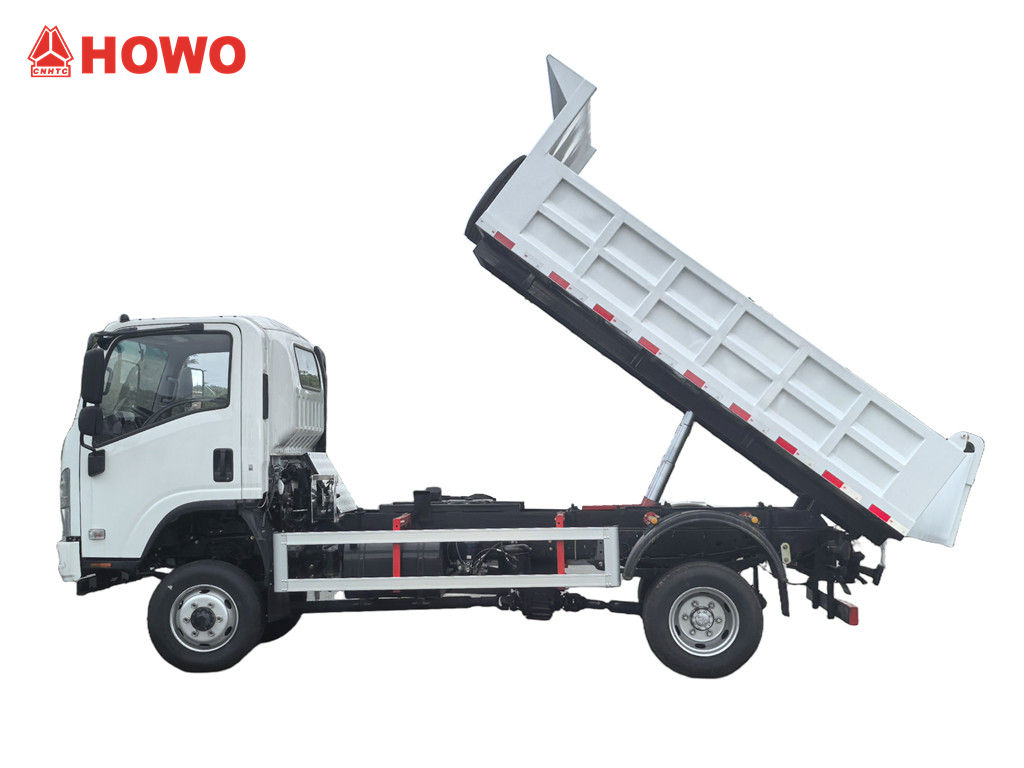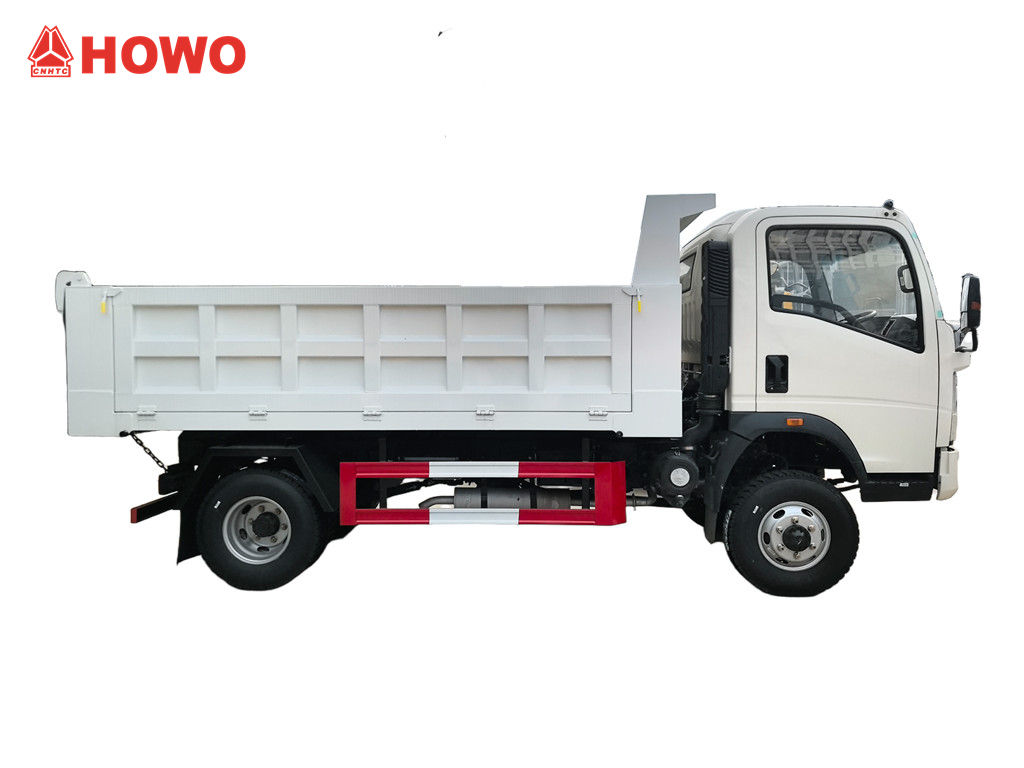 Mini dumper off-road Howo 3 Ton dimodifikasi berdasarkan sasis truk ringan HOWO 4x4 RHD, dengan jarak sumbu roda 3360mm, dilengkapi dengan mesin diesel YN4102QBZL 116hp, gearbox WLY6TS55C-6 kecepatan, dan bak dump yang terbuat dari baja karbon dengan tiga sisi dan empat dasar, berukuran 3550×2100×550mm, pengangkatan sentral, pengangkatan stabil, bongkar muat bersih dan cepat, pintu belakang dapat dibuka, dan kendaraan dikendalikan oleh katup kontrol di sisi pengemudi, yang mudah dioperasikan.