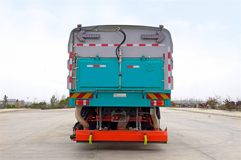 ♦ Lengan penyemprot belakang menciptakan kabut air halus di belakangnya. truk Secara efektif menekan debu sekunder yang dihasilkan selama pembersihan.