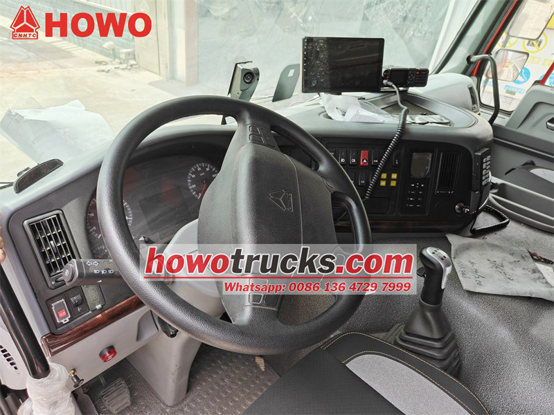Truk offroad HOWO 4x4 tugas berat, pilihan LHD dan RHD, sangat nyaman dan senyap, AC, jok suspensi udara, dll.