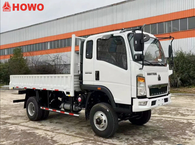 Truk kargo HOWO 4x4 penggerak semua roda 5 ton dimodifikasi berdasarkan sasis kabin truk ringan HOWO 2080 baris tunggal 4x4 penggerak semua roda. Truk ini memiliki massa total 9890 kg, kapasitas muat 5 ton, jarak sumbu roda 3800 mm, dan dilengkapi dengan mesin Yunnei YN4102QBZL 116 tenaga kuda dan transmisi 6 kecepatan WLY6TS55C. Bagian atas bak kargo berukuran 4850*2150*550 mm dengan ketebalan sisi 3 mm dan ketebalan dasar 4 mm. Panel samping dan panel belakang dapat dibuka untuk memudahkan bongkar muat.
