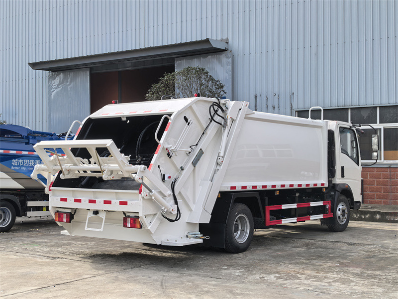 Truk pemadat sampah Howo 4x2 berkapasitas 8 meter kubik menggunakan sasis truk ringan Sinotruk Howo dengan jarak sumbu roda 3800 mm. Truk ini dilengkapi dengan mesin Cummins ISF3.8s3141 dan transmisi WLY6TS55. Bak sampah bagian atas memiliki desain lengkung, terbuat dari baja karbon dengan sisi setebal 4 mm dan bagian bawah setebal 5 mm, serta telah diberi perlakuan anti korosi dan karat. Bak ini memiliki bak miring yang dipasang di belakang dan dapat dipasang dengan bak sampah standar berkapasitas 110 L dan 240 L. Sistem kontrol CAN-BUS memungkinkan pengumpulan, pemadatan, dan pembongkaran sampah melalui kotak kontrol listrik di kabin, katup kontrol hidrolik di sisi pengemudi, kotak kontrol listrik di sisi kiri pintu belakang, dan tuas pengoperasian manual di sisi kanan.