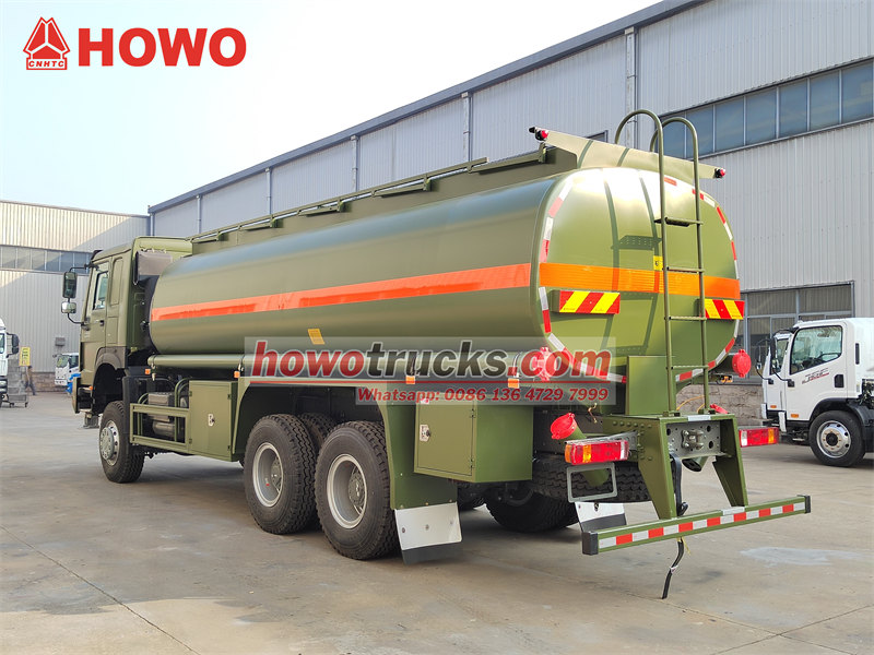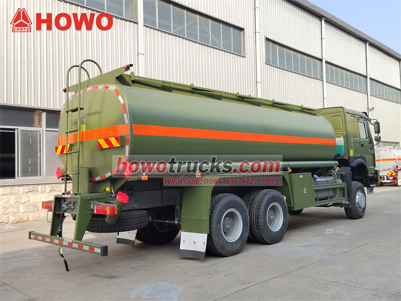 Truk tangki bahan bakar HOWO 6×6 dirancang berdasarkan sasis penggerak semua roda SINOTRUK HOWO 6×6, kapasitas tangki bahan bakarnya mencapai 18.000 liter, terbuat dari baja karbon berkualitas tinggi dengan perawatan anti korosi internal untuk memperpanjang masa pakainya. Tangki dibagi menjadi dua kompartemen, memungkinkan penyimpanan dan pengangkutan berbagai jenis produk minyak. Dengan performa off-road yang sangat baik, kendaraan ini dapat beradaptasi dengan kondisi jalan yang berat seperti lumpur dan kerikil.