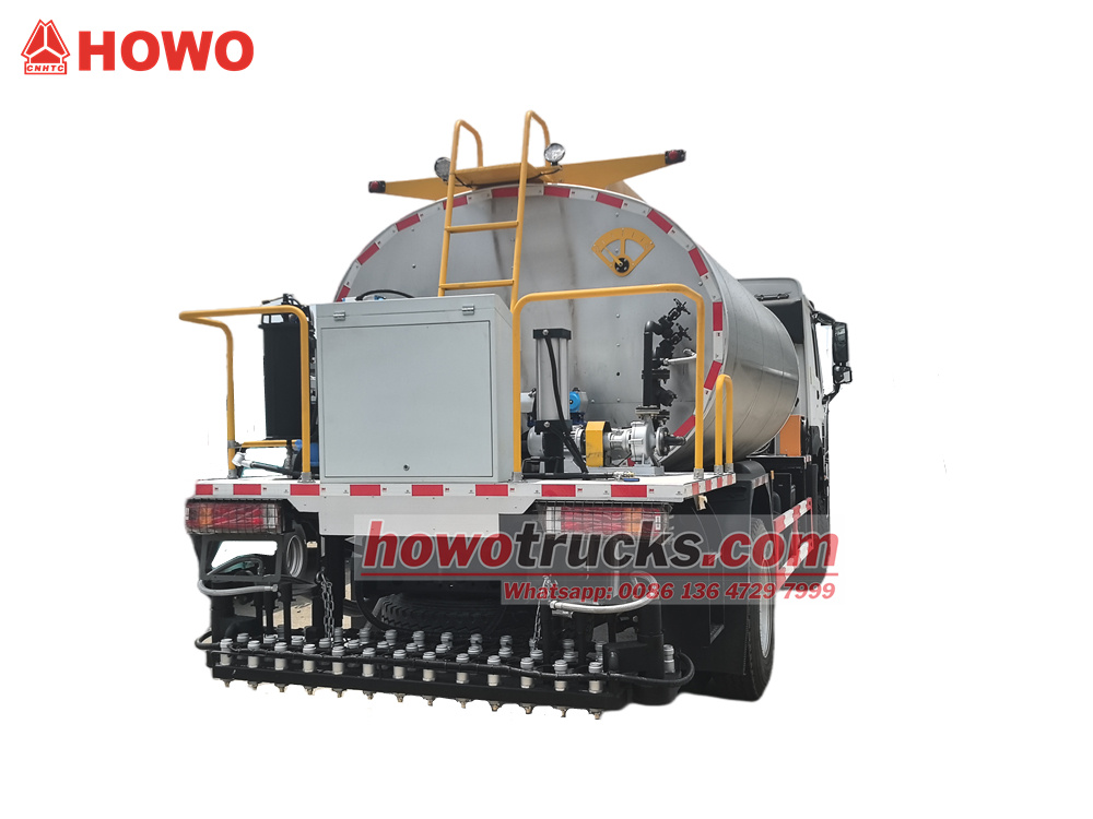 Distributor aspal HOWO 4x2 8 meter kubik merupakan sasis kabin HOWO HW76 yang dimodifikasi dengan jarak sumbu roda 4600 mm. Dilengkapi dengan mesin WP10.300E22 dan gearbox HW19710. Bagian atasnya berupa tangki aspal 8 meter kubik, dilengkapi dengan pompa isolasi aspal cerdas RCB38/0.6-80F, 36 nozzle aspal di bagian belakang, lebar semprotan 6 m, volume semprotan 0,2-3 kg/m², dan pembakar diesel impor (nilai kalor: 10×10).⁴kkal/jam), pemanas oli termal otomatis, kontrol komputer cerdas di kabin, dan genset bantu.