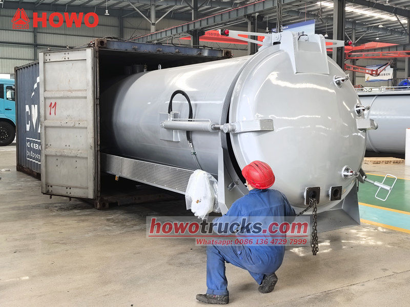 Bak tangki penyedot septic tank Howo 8cbm (juga disebut kit truk pompa penyedot vakum 8cbm, bak atas truk tangki vakum 8.000 liter, kit truk penyedot limbah vakum 8cbm, kit bak atas tangki pembuangan limbah, struktur atas truk tangki vakum 8cbm, kit truk tangki pompa vakum lumpur, kit bak atas truk penyedot vakum, dll.) Alat ini akan dipasang pada sasis untuk membersihkan dan mengumpulkan cairan seperti air kotor. Cocok untuk membersihkan saluran pembuangan, tangki septik, lubang pembuangan, selokan, dll.