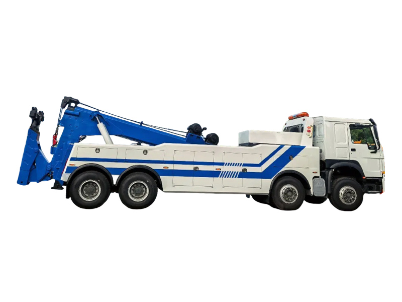 Truk derek tugas berat HOWO 8×4 adalah kendaraan penyelamat profesional yang terintegrasi dengan kemampuan derek dan pengangkatan. Dibangun di atas sasis tugas berat HOWO 8×4 yang kokoh dan ditenagai oleh mesin Weichai 400 tenaga kuda, truk ini memiliki kapasitas pengangkatan 16.000 kg dan dua winch 80 kN. Hal ini memungkinkan operasi pengangkatan, penopangan, dan derek secara simultan, sehingga sangat efektif dalam menangani kendaraan kecelakaan berat di jalan raya dan jalan perkotaan untuk pembersihan cepat.