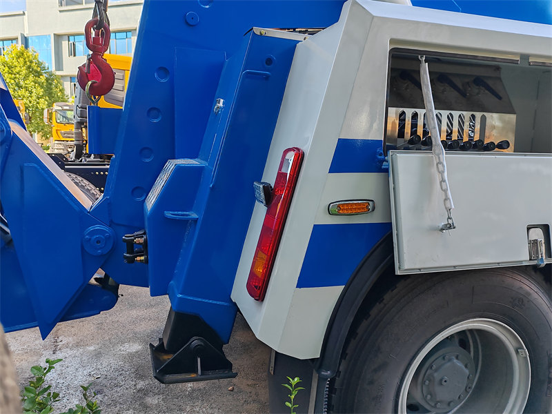 1. Kapasitas Angkat: Fungsi pengangkatan adalah fitur mendasar dari truk derek tugas berat. Fungsi ini melibatkan perpanjangan, penarikan, pengangkatan, dan pelipatan lengan derek untuk mengangkat kendaraan yang mogok dari depan atau belakang, kemudian menderek seluruh kendaraan menjauh dari lokasi kejadian. Rakitan pengangkat truk hadir dalam berbagai bentuk struktural, umumnya mampu mengangkat gandar, roda, pegas daun, atau rangka kendaraan yang mengalami kecelakaan, sehingga memudahkan pemasangan dan pelepasan.