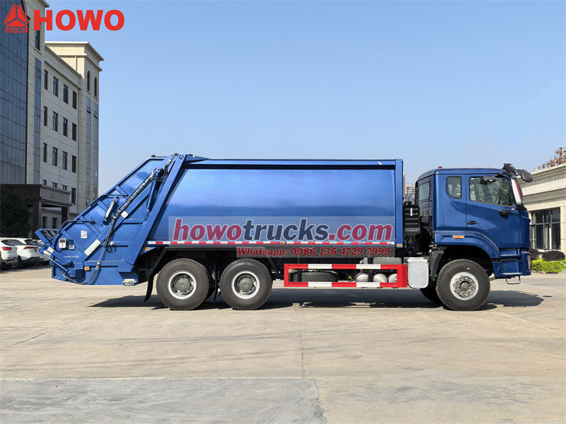 6×6, RHD drive is optionalIni Truk pengangkut sampah pemadat tugas berat Howo 6x4 Merupakan karya luar biasa di bidang pembersihan perkotaan. Dilengkapi dengan mesin WP10.340, truk ini memiliki daya output yang kuat sebesar 340 HP, kapasitas mesin 9.726 L, serta teknologi turbocharging dan intercooling. Tidak hanya bertenaga, tetapi juga memenuhi standar emisi Euro 6 yang ketat. Konfigurasi berat total 33 ton dan kapasitas muat 20 ton dapat sepenuhnya memenuhi kebutuhan pengangkutan sampah harian di kota-kota besar dan menengah.