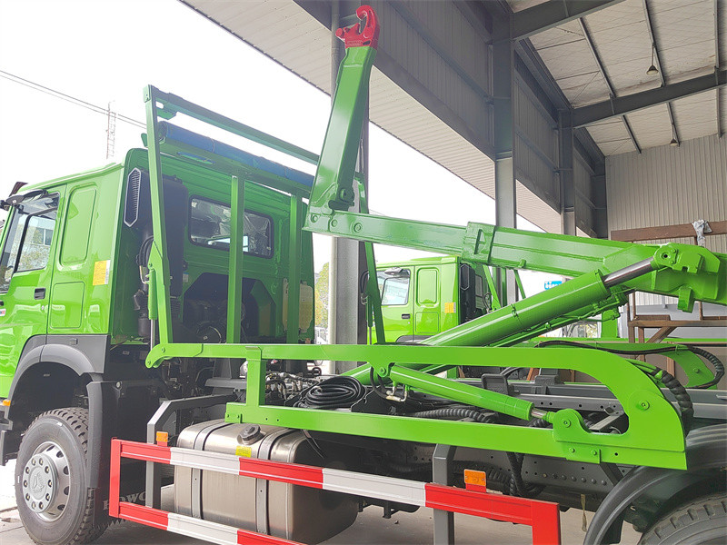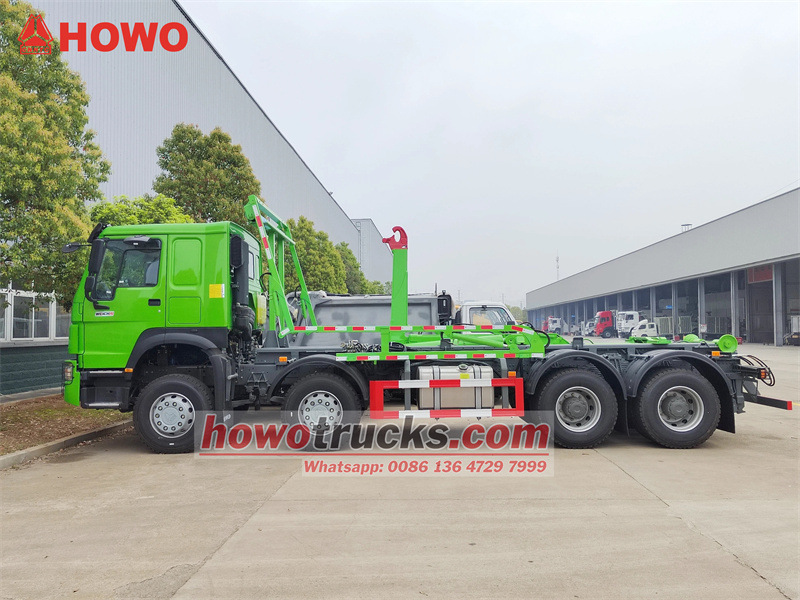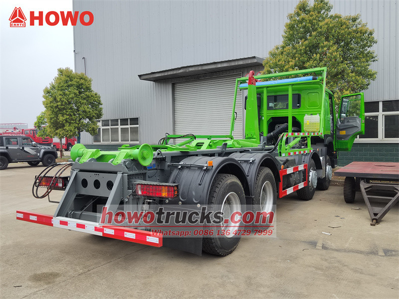 Truk sampah HOWO 8x4 26 ton dengan sistem penutup menggunakan sasis truk tugas berat Sinotruk HOWO 8x4 dengan jarak sumbu roda 1950+3825+1350mm. Truk ini dilengkapi dengan mesin Weichai WP12.400E201 dan transmisi Sinotruk HW19710. Struktur atasnya adalah unit hooklift PALFINGER T26 26 ton, yang mampu membawa tempat sampah baja karbon dengan dimensi 6500x2350x1500mm. Bagian depan unit hooklift dilengkapi dengan sistem terpal otomatis yang dapat menutupi tempat sampah dari depan dan belakang. Sistem terpal otomatis ini menggunakan prinsip penyesuaian boom "telescopic rake" yang terkenal untuk mencapai cakupan depan dan belakang.