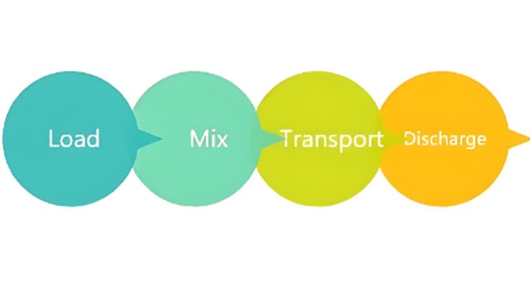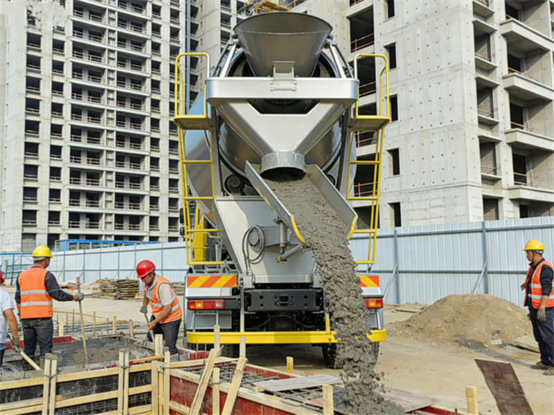 ▶ Mengangkut: Setelah beton dicampur, truk mengangkutnya ke lokasi konstruksi. Drum terus berputar selama pengangkutan untuk mencegah beton mengeras.