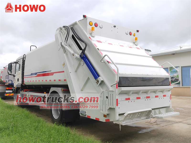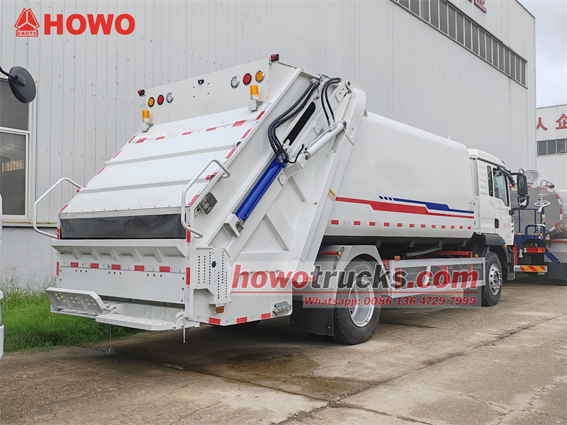 Truk pemadat sampah HOWO 4x2 16 cbm mengadopsi sasis kabin satu setengah baris Sinotruk HOWO TX 2280 dengan jarak sumbu roda 4700mm, dan dilengkapi dengan mesin Sinotruk MC07.25-60 Euro 6 250 tenaga kuda dan gearbox 8 kecepatan HW95508STCL. Kecepatan maksimumnya adalah 101km/jam. Bagian atas bak adalah bak pemadat sampah 16 cbm yang terbuat dari baja karbon dengan bodi tangki melengkung dan perawatan anti korosi dan anti karat, dengan ketebalan sisi 5mm dan bagian bawah 6mm. Dilengkapi dengan tangki limbah 200L dan tangki oli hidrolik. Tidak ada mekanisme pembalik di bagian belakang, tetapi dilengkapi dengan dua pedal lipat untuk memudahkan pembuangan sampah. Bak pengisi dilengkapi dengan penutup. Truk ini menggunakan sistem kontrol elektronik CAN-BUS, sistem pneumatik, dan sistem kontrol hidrolik, serta rasio pemadat 3,4:1.