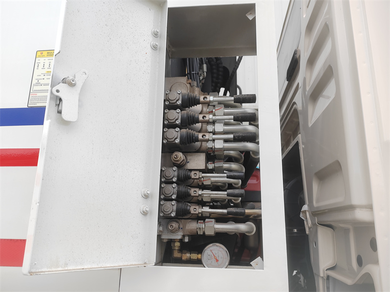4. Operasi multi-lokasi: Dilengkapi dengan panel kontrol elektrik yang terpasang di kabin, tuas hidrolik manual di sisi pengemudi, dan kotak kontrol elektrik pintu belakang, kendaraan ini menawarkan pengoperasian yang nyaman dari berbagai posisi.