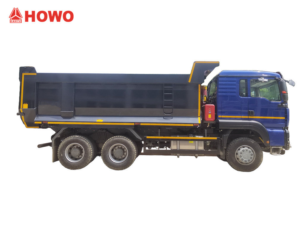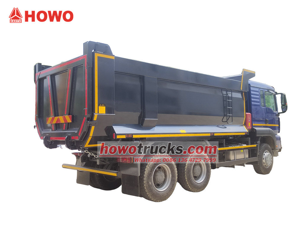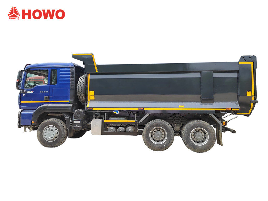 Truk Dump Tipper Kabin HOWO TX dimodifikasi berdasarkan sasis HOWO TX Cabin 6x4, dengan jarak sumbu roda 3200+1400mm, dilengkapi dengan mesin diesel WP10.380E22 380hp, transmisi HW19710, 10 gigi maju, 2 gigi mundur, dan bak dump yang terbuat dari baja karbon dengan ketebalan samping 6 mm, ketebalan bawah 8 mm. 5200x2300x1400mm, Pengangkatan atas depan, pengangkatan stabil, bongkar muat bersih dan cepat, pintu belakang dapat dibuka, dan kendaraan dikendalikan oleh katup kontrol di sisi pengemudi, yang mudah dioperasikan.