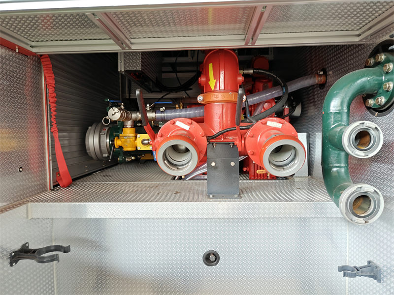3. Badan tanker:Disesuaikan untuk bahan pemadam api Air + Busa + Bubuk Kering