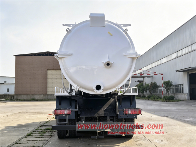 16000*2This Nigeria HOWO NX septic tanker cleaning truck is a specialized vehicle designed for Nigeria heavy-duty sewage suction operations. Based on the Sinotruk HOWO NX400 chassis, it integrates a 20 cubic meter sewage suction tank and a 2BE-204 water circulation vacuum pump, enabling efficient sewage suction. This truck features self-priming and self-discharging capabilities, a large capacity, convenient transportation, and a powerful vacuum pump with a long suction range, making it suitable for heavy-duty operations such as urban pipe network dredging and septic tank cleaning.