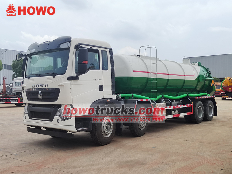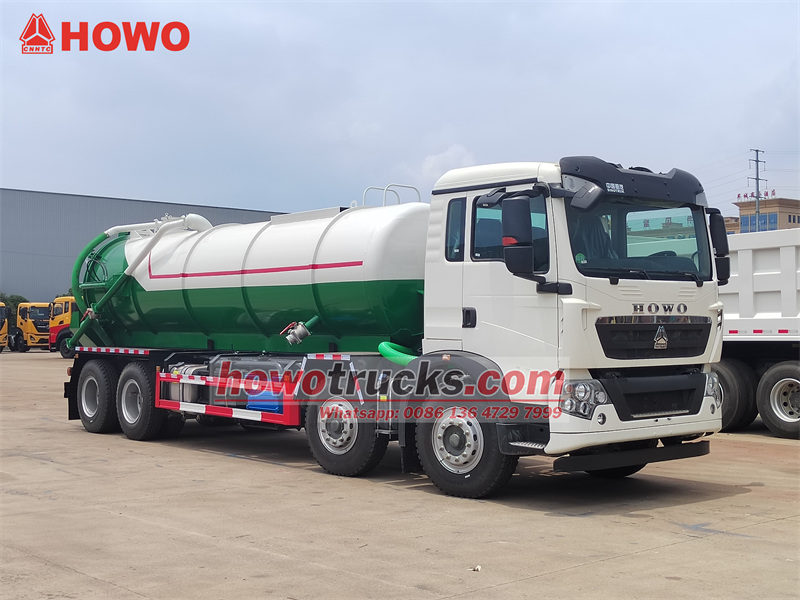 17500Truk tangki vakum HOWO TX 25000L adalah kendaraan sanitasi khusus yang dirancang untuk penyedotan, pengangkutan, dan pembuangan limbah cair dan lumpur secara efisien. Dibangun di atas sasis tugas berat HOWO TX 8×4, truk ini ditenagai oleh mesin 350 tenaga kuda dan transmisi 10 kecepatan HW19710, didukung oleh tangki bahan bakar besar berkapasitas 400 liter. Struktur atasnya mencakup tangki vakum 25 meter kubik yang terbuat dari baja karbon berkualitas tinggi 6 mm, terintegrasi dengan pompa vakum cincin air SK-20 yang mampu mencapai laju hisap maksimum 20 m³/menit dan tingkat vakum tertinggi 8300 Pa, memastikan daya hisap yang kuat dan ketahanan terhadap korosi.