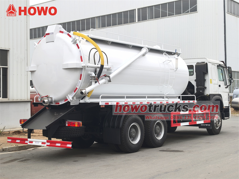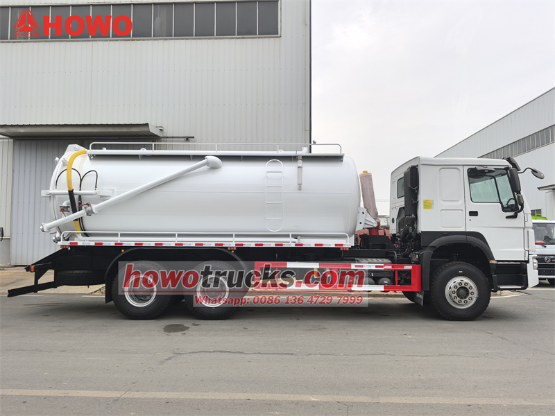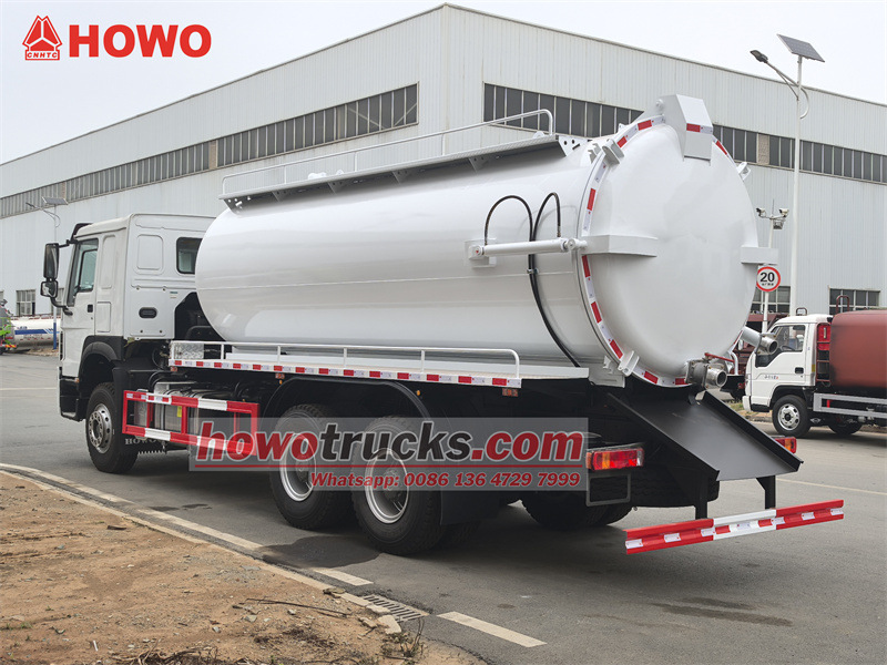 Truk penyedot limbah HOWO 6x4 15 cbm dimodifikasi dari sasis kabin HOWO HW76. Jarak sumbu roda 4600+1350mm, dilengkapi dengan mesin Weichai WP10.340E22, dan gearbox 10-speed Sinotruk HW19710. Bagian atas bak berupa tangki limbah 15 cbm, terbuat dari baja karbon, dengan ketebalan 5mm. Tangki dapat diangkat dan pintu belakangnya dapat dibuka. Dilengkapi dengan pompa vakum Jurop PN106D dengan laju aliran 11.000 L/min. Kendaraan ini juga dilengkapi dengan pipa pengintip, tangga, katup pembuangan pintu belakang, dan tuas pengoperasian hidrolik manual di sisi pengemudi (untuk mengontrol pembukaan/penutupan pintu belakang dan pengangkatan/penurunan tangki).