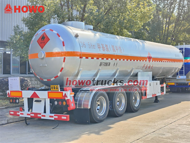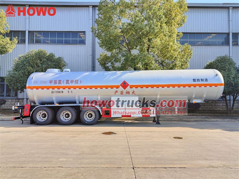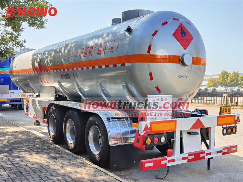 13 tonSemi-trailer tangki cairan kimia CS9402GYQA adalah tanker tiga poros yang dirancang khusus untuk mengangkut bahan kimia seperti metil klorida, dengan volume tangki 40 meter kubik. Tangki terbuat dari pelat baja Q420R berkekuatan tinggi 8 mm, dengan bagian atas terbuat dari material 16MnDR. Tangki ini memiliki tekanan desain 1,27 MPa dan tekanan kerja 1,2 MPa, serta kemampuan bongkar muat dua sisi. Kendaraan ini dilengkapi dengan kotak katup paduan aluminium ganda, katup penutup darurat, sistem pemantauan ketinggian dan tekanan cairan, serta tali pengardean anti-statis dan perangkat pemadam kebakaran untuk memastikan pengangkutan bahan kimia yang aman dan andal.